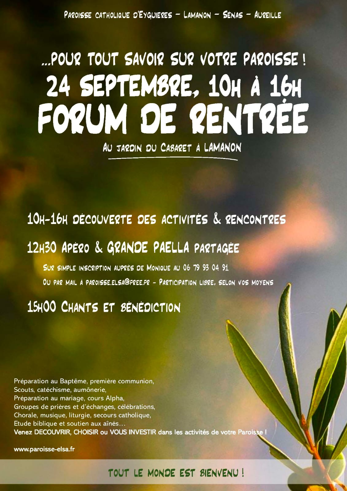 Chers pratiquants réguliers ou occasionnels,Chères bonnes volontés,Chers talents cachés à mettre au service de la paroisse,Chers amis, Bonjour à tous ! Voici l’ordre du jour de la réunion paroissiale de rentrée à laquelle nous sommes tous invités ce VENDREDI 28 AOÛT à 19h – PRESBYTÈRE DE LAMANON Les 3 sujets à partager : 1 – […]
