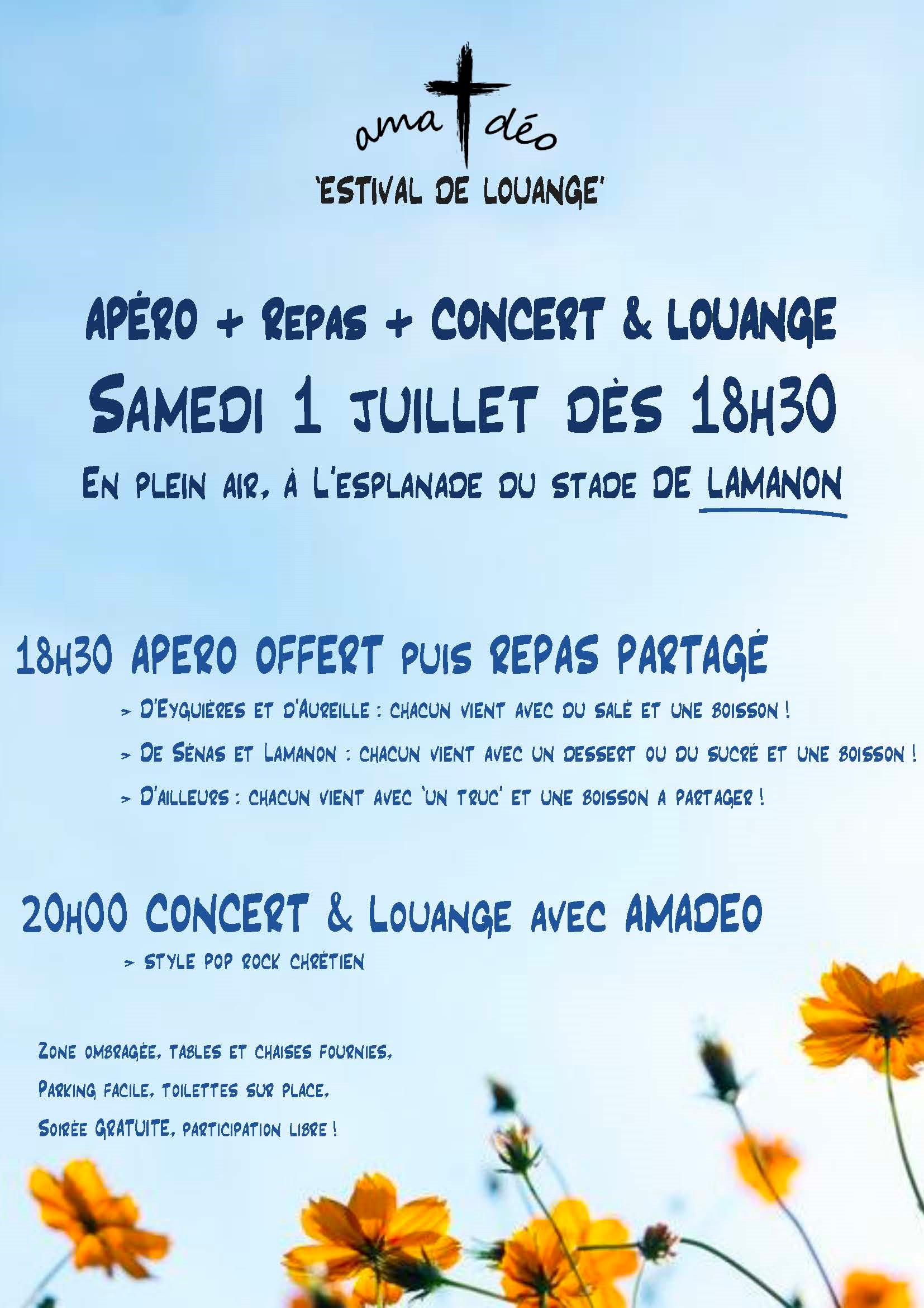Soirée Louange AMADEO le 28 Janvier 20h30 à Lamanon