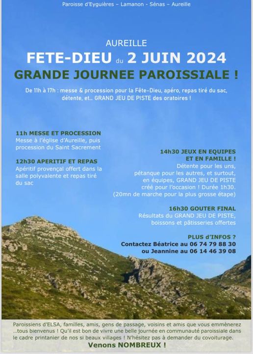 CORRECTIF : Jeudi 13 mai : la messe de l’Ascension est à Aureille à 10H00 Samedi 15 Mai : pas de messe à 9h00 à LAMANON